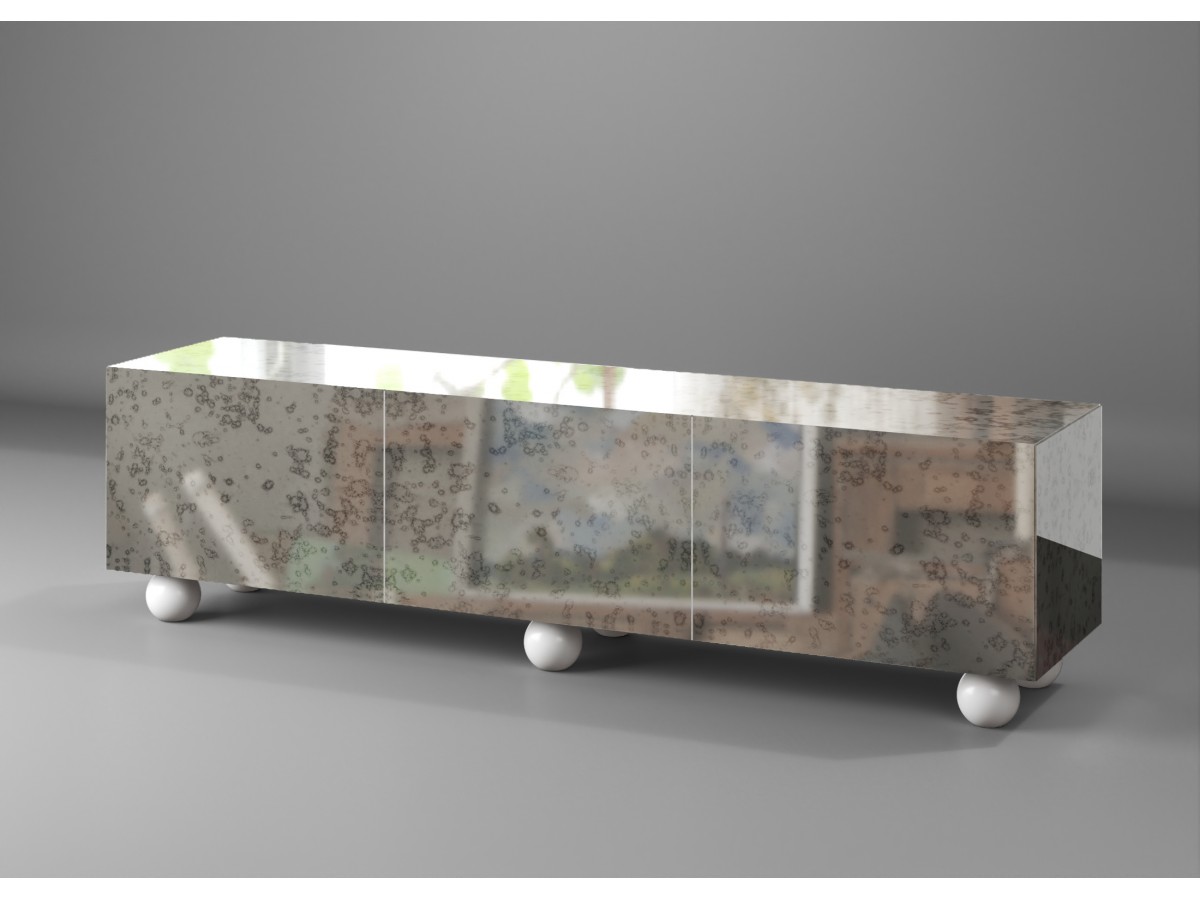 Grigio argento -patinointi on kemiallinen prosessi, jota ei voi toistaa täsmälleen samanlaisena. Peilin kuvio on aina ainutkertainen — se ei ole muotoiluvalinta, vaan materiaalin ominaisuus.
